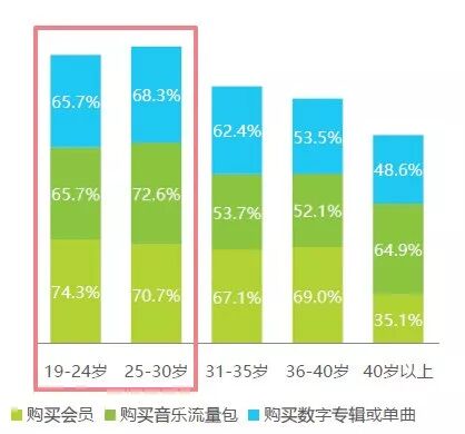 此外,据艾瑞咨询的统计数据,19-30岁的消费群体购买力更强,而网易云音乐的受众群体中,90后占据主力地位。网易云音乐高粘性、年轻化的用户群体再加上专业的平台优势,在拉动音乐付费总量增长上优势更强。