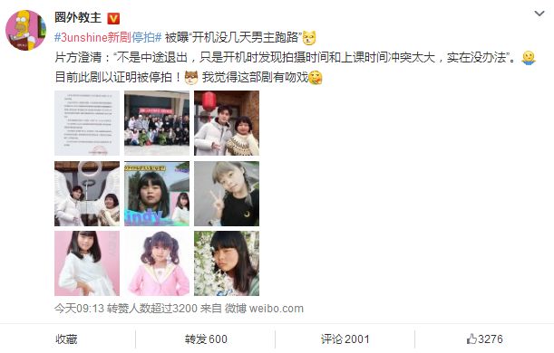 近日,3unshine的新剧《人百分百靠外表》已停拍,网曝称“开拍没几天男主跑路”是造成停拍的直接原因。