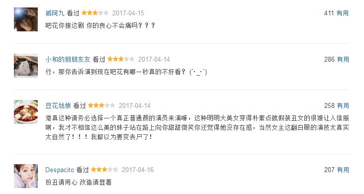 但是,在原剧中,桐谷美玲(吧花)和水川麻美的颜值并不低,前者更是位列2012年全球最美面孔TOP12,因此有网友直言,希望“务必选择一个真正普通颜的演员来演。”这也是该剧只拿到豆瓣6.3分的原因之一。